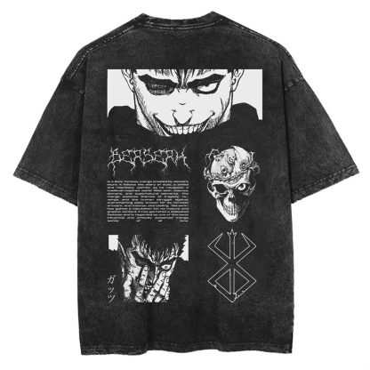 Berserk X Acid Printed Men's Washed T-Shirt