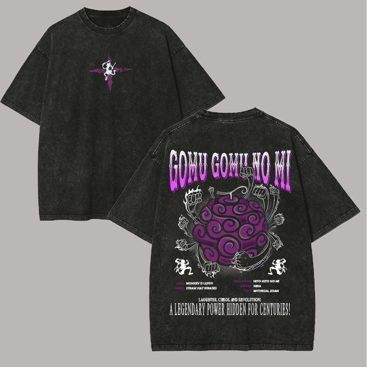 Gomu Gomu No Mi Pirate Devil Fruit Printed Unisex Washed T-Shirt