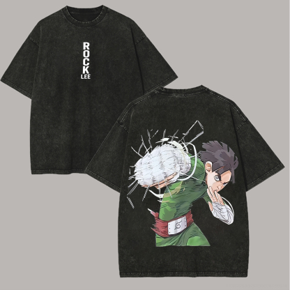 Naruto Rock Lee Printed Unisex Washed T-Shirt