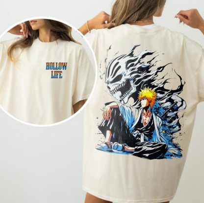 Unisex Ichigo Bleachh 2 Sides Hollow Life Printed Oversized T-shirts